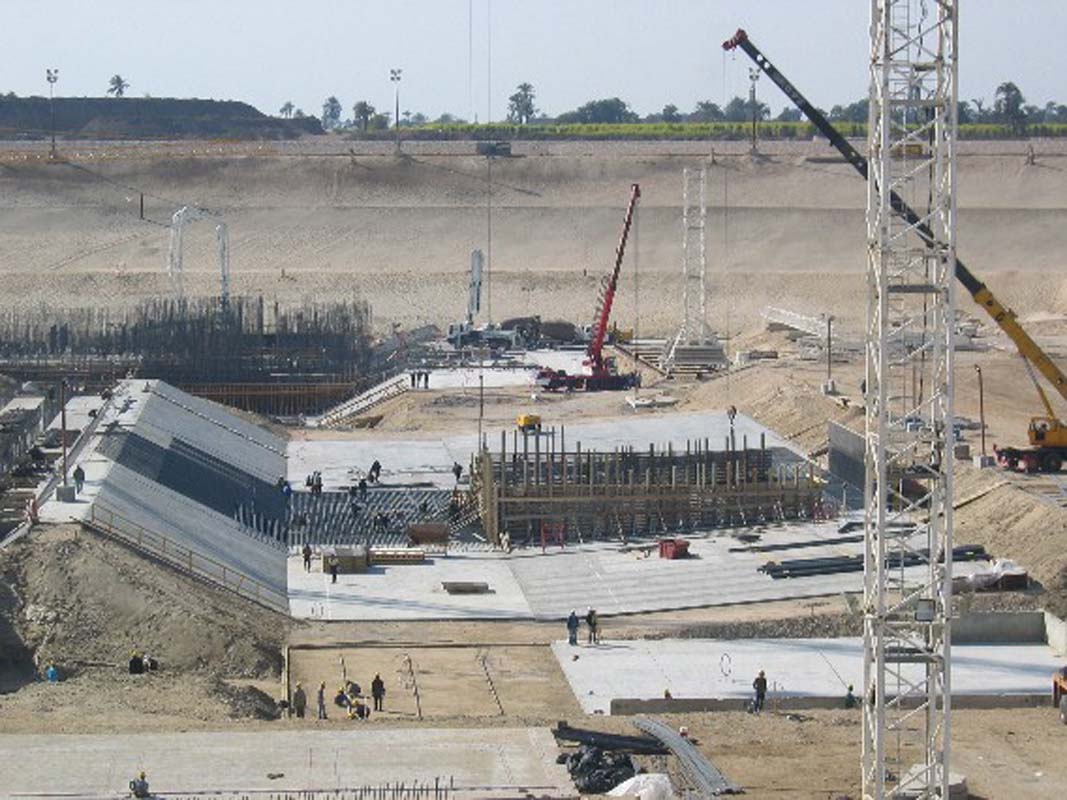 A 330-meter-long, 20-meter-high concrete structure erected in a construction pit in Naga Hammadi, Upper Egypt, replaces a structure built in the early 1900s.